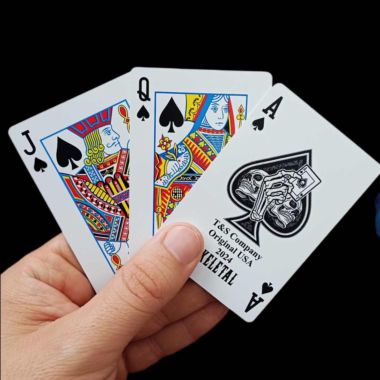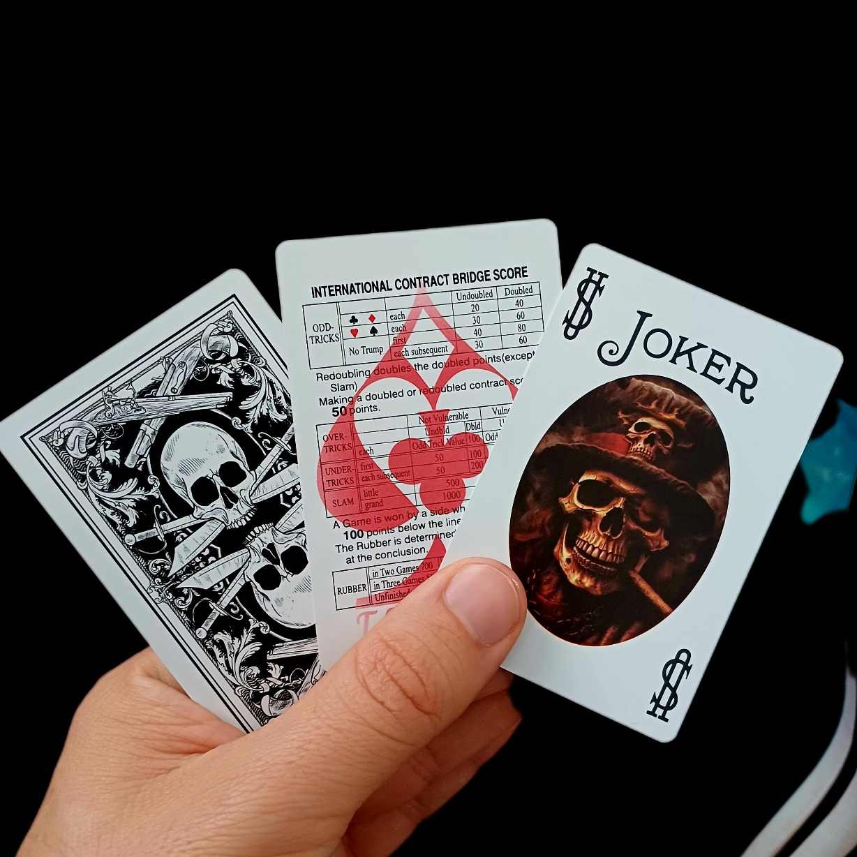 ورق پاسور اسکلتی طرح جدید درجه یک شناسنانه دار دورو روغنی بر خور عالی کیفیت چاپ عالی کیفیت بالا مناسب بازی زیاد و حرفه ای و دورهمی و شعبده.
