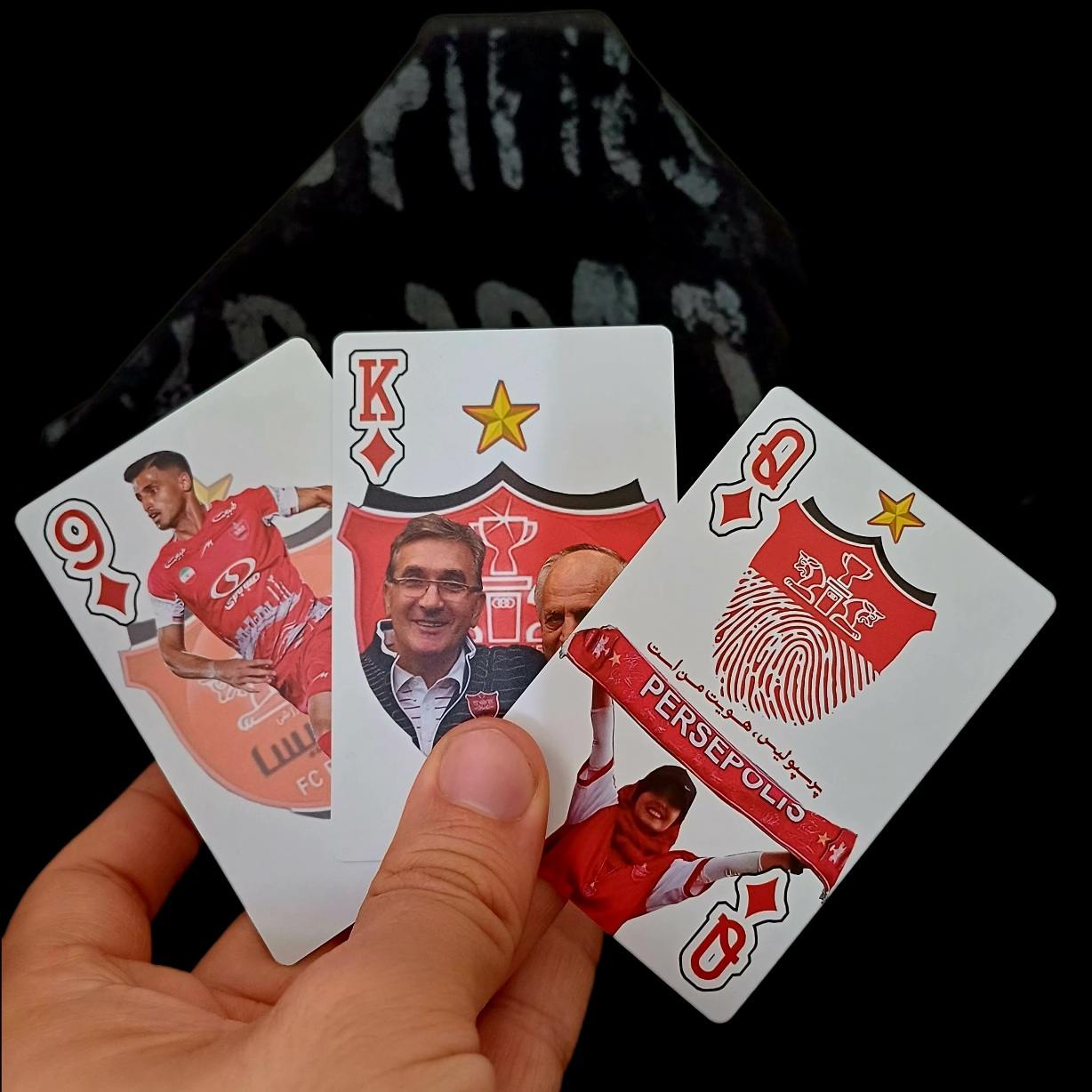 کارت بازی باشگاهی پرسپولیس دو رو روغنی طراحی جذاب و خاص از بازیکنان و اسطوره های پرسپولیس مناسب بازی و سرگرمی خانوادگی و شعبده بازی