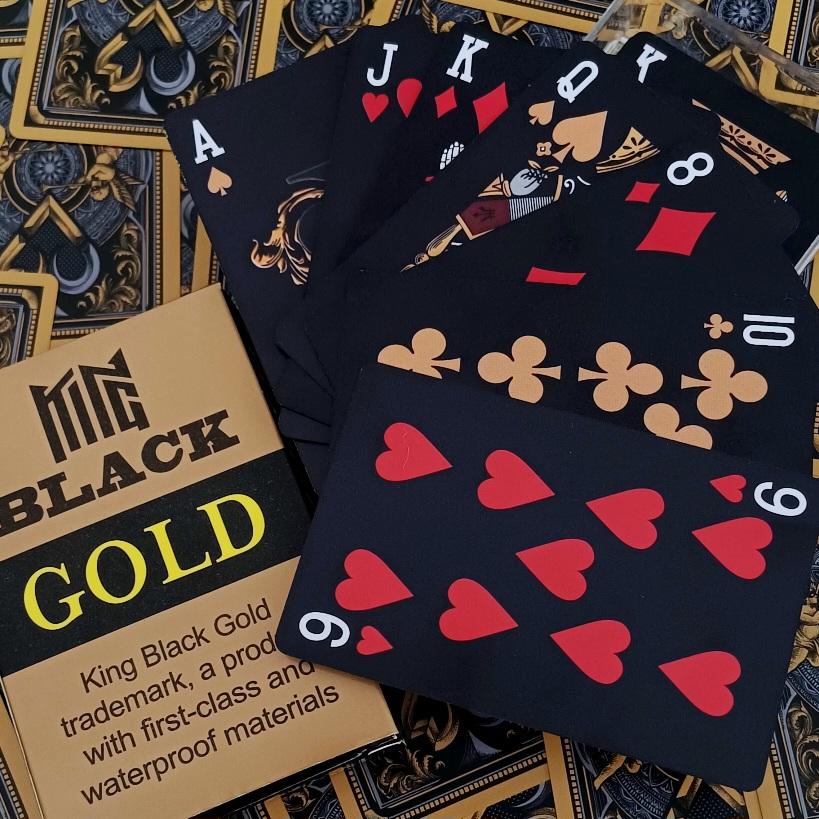 ورق بازی پاسور کینگ بلک گلد طراحیه بسیار زیبا جنس پلاستیک قابل شستشو دور کارتها طلایی چاپ پررنگ مناسب بازی و شعبده