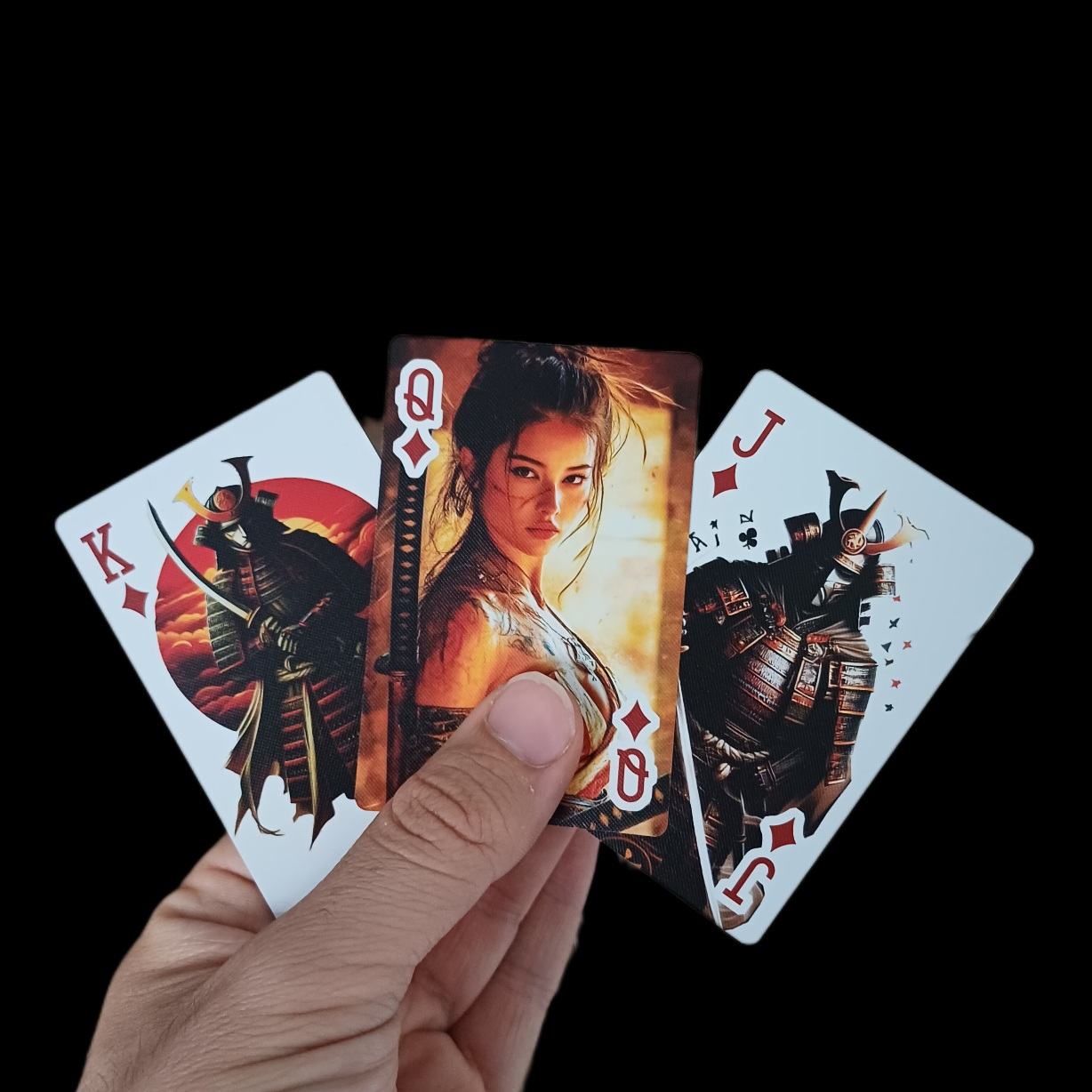 ورق بازی پاسور سامورایی جذاب و خاص کیفیت چاپ پررنگ بر خور عالی جنس پلاستیک دورو سوزنی با کیفیت مناسب بازی و شعبده