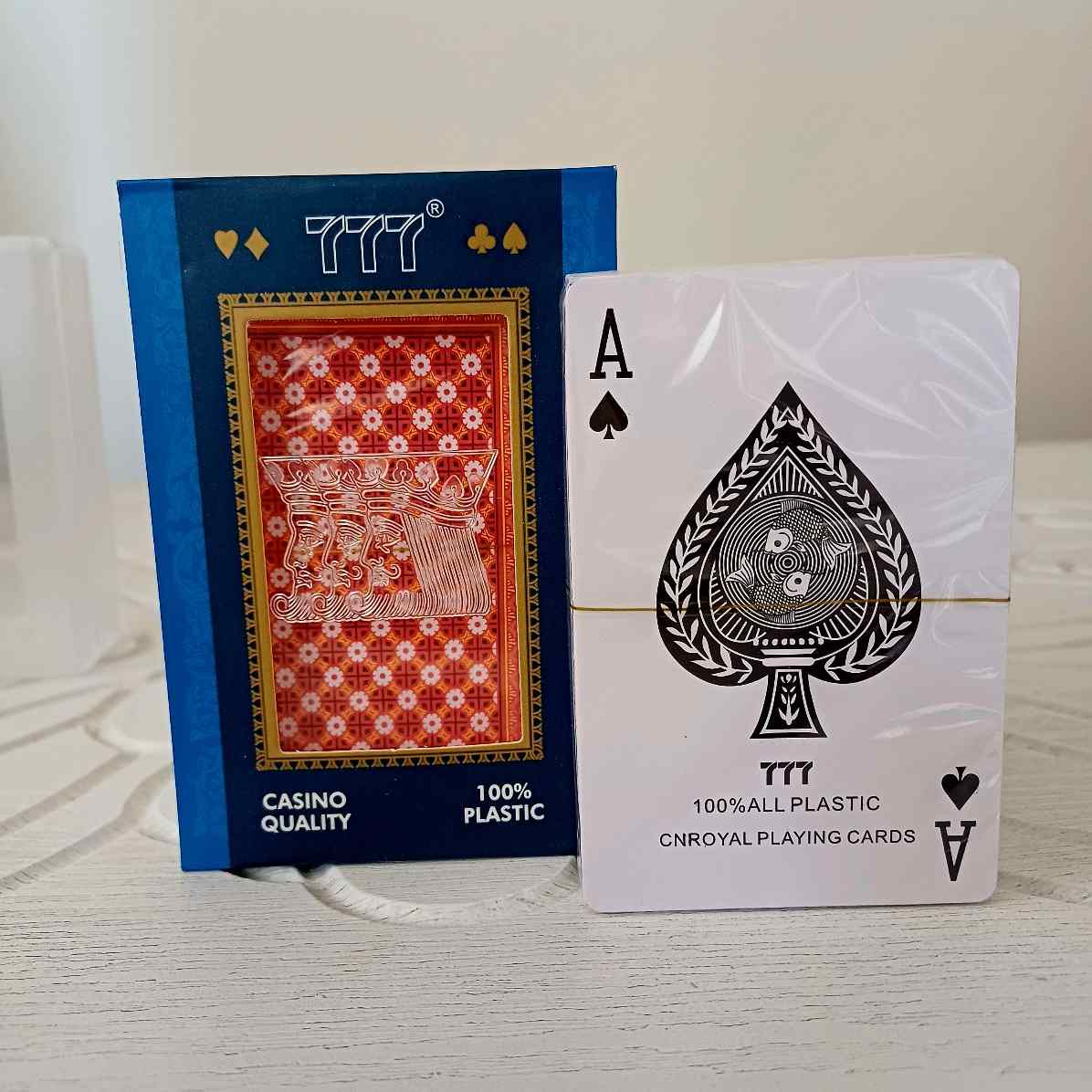 کارت بازی ۷۷۷ درجه یک ۱۰۰٪ پلاستیک قابل شستشو پشت کارت زبر روی کارت روغنی کیفیت بالا ثبات رنگ بالا مناسب بازیه زیاد و حرفه ای