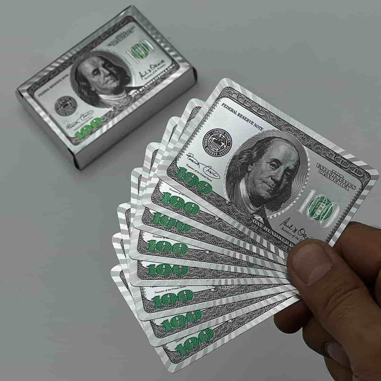 ورق پاسور طرح دلار طراحی جذاب و زیبا دورو روغنی ضد آب برخور عالی کیفیت چاپ بالا مناسب بازی و شعبده.